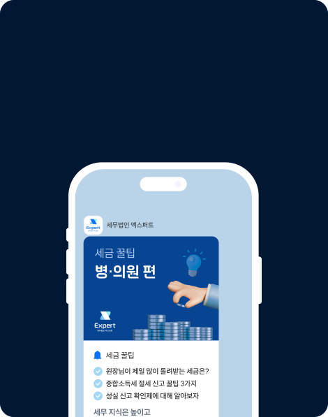또한, 매달 5일 발행하는 월간 엑스퍼트를 통해 달라진 세무 소식과 다양한 절세 지식을 빠짐없이 전해드립니다.
