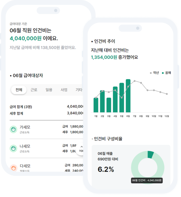 손익, 매출, 인건비 추세 등 기간별 사업 현황을